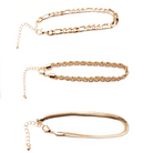 Our Chained Up Anklet Set is a collection of three stackable gold chain anklets that bring a finishing touch to any look. Each anklet has its own unique look but can be worn together for a chic layered look.