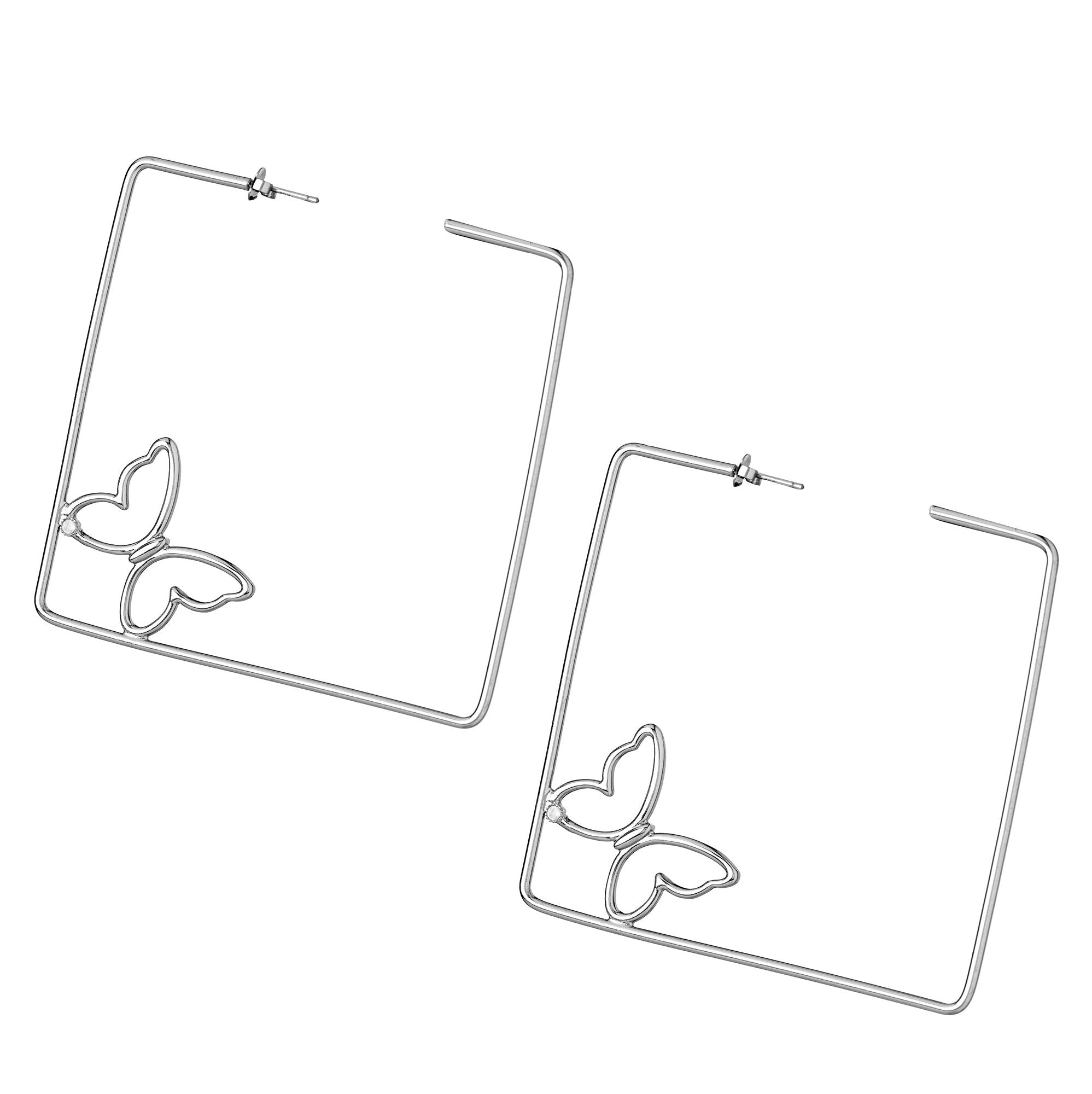 Open Square Butterfly 3″ Earrings-White Gold