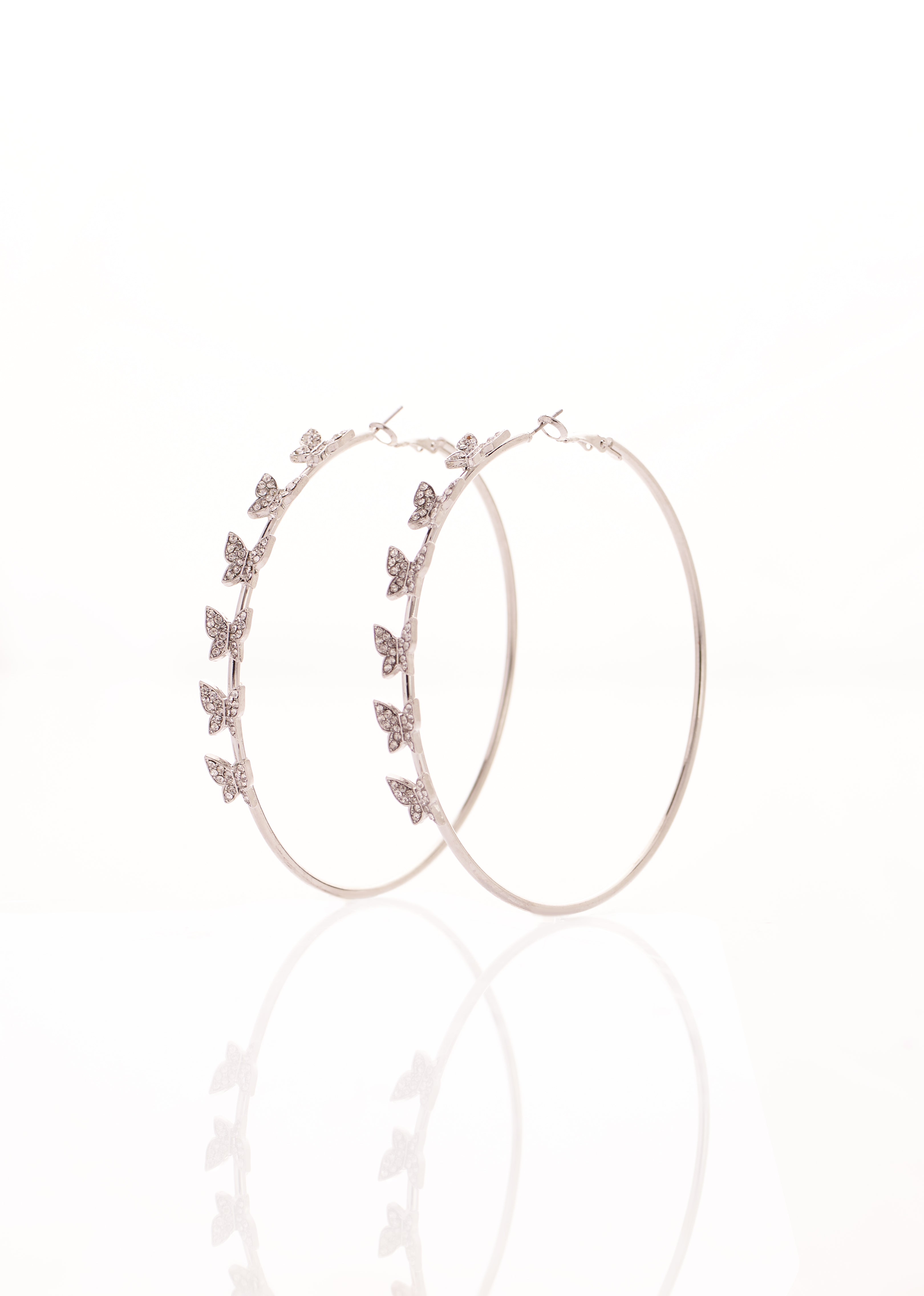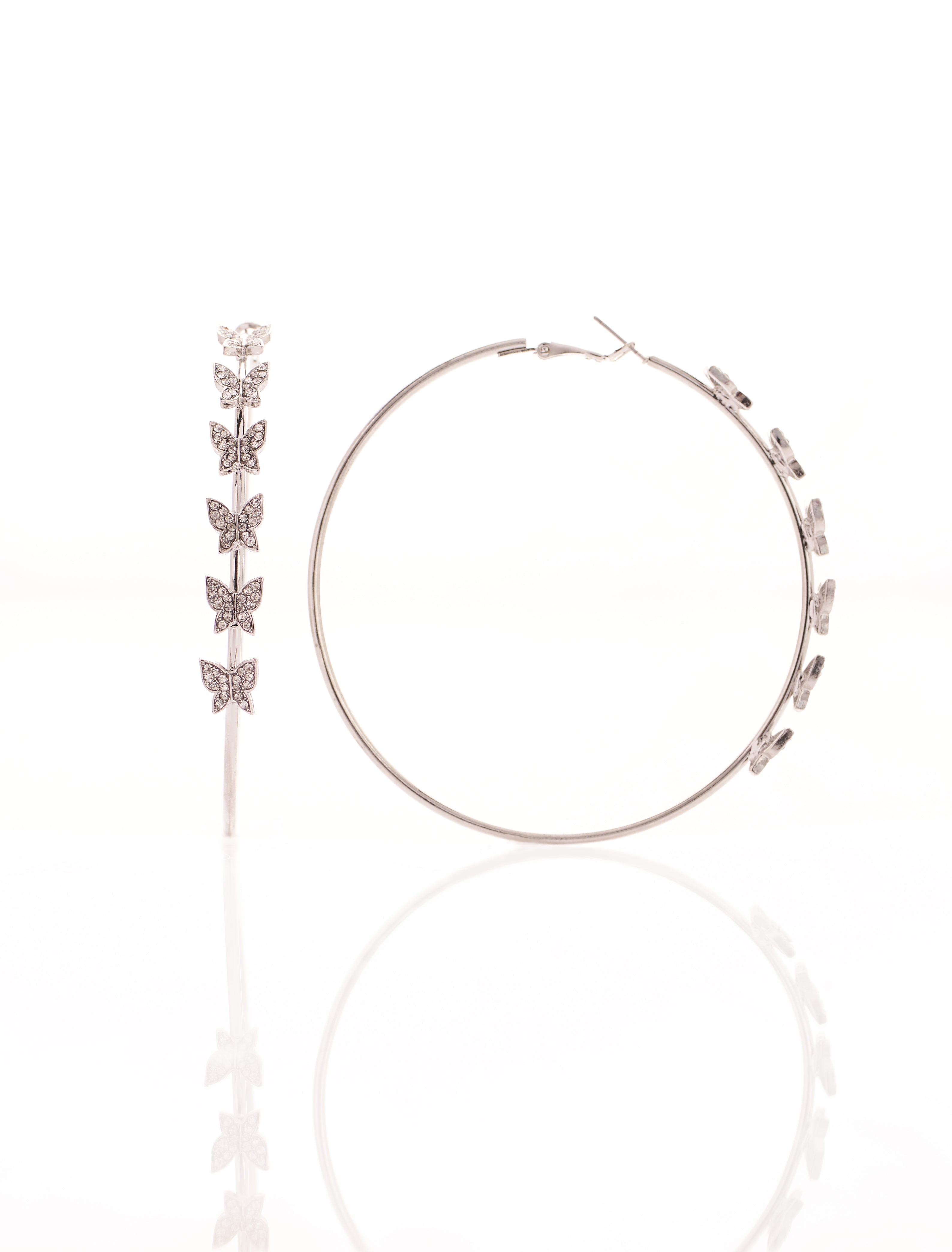 Continuous Butterfly Hoop 4″ Earrings-White Gold