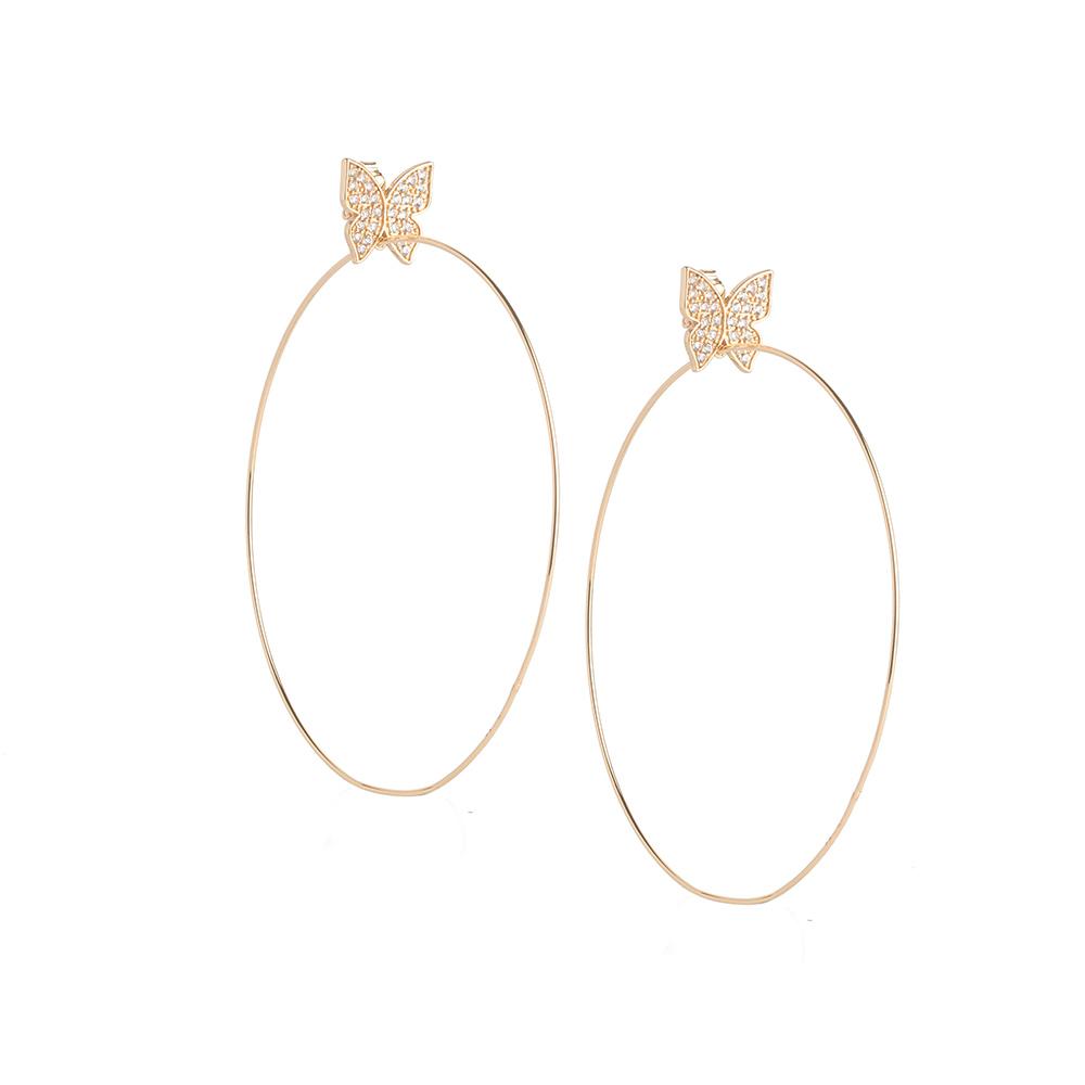 These unique, airy, best-selling Butterfly Signature hoop earrings with clip-ons add an elegant twist to a classic piece with a statement butterfly stud and a 4" hoop accent.