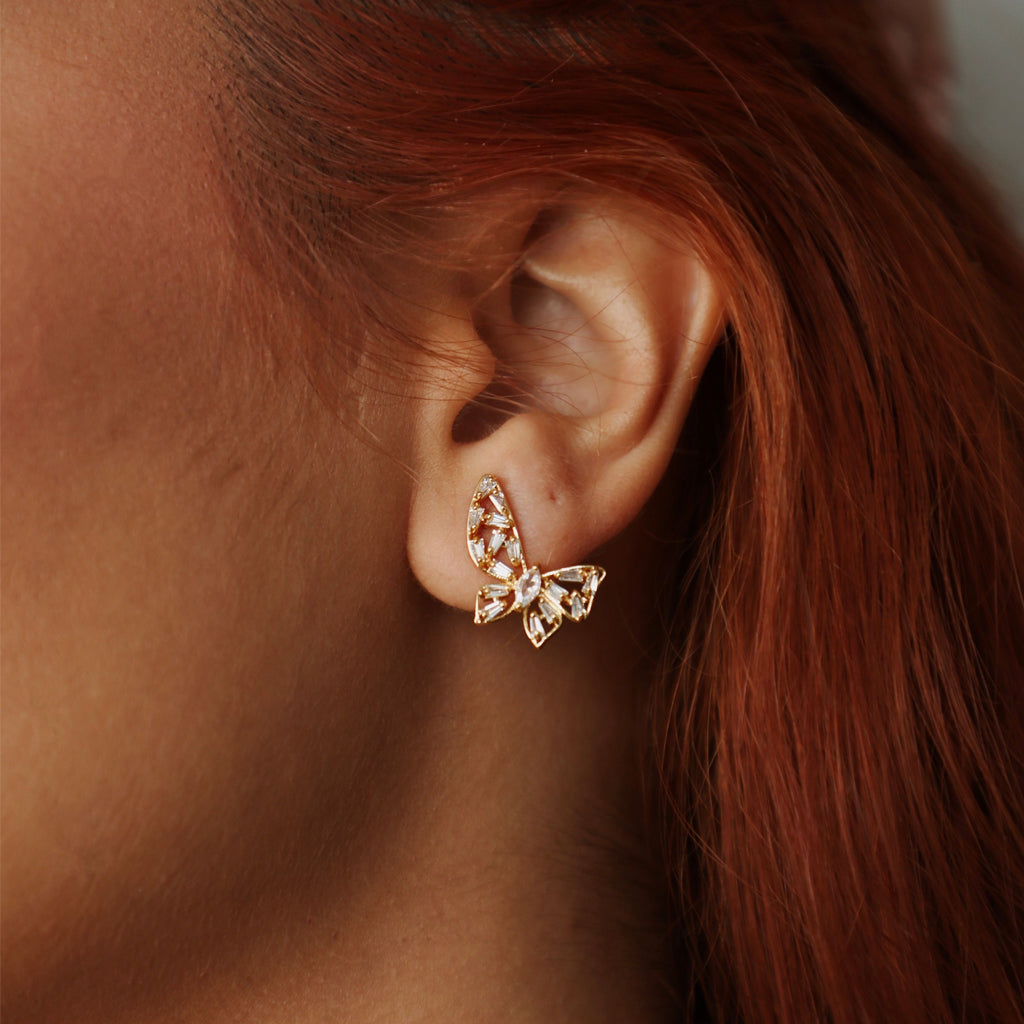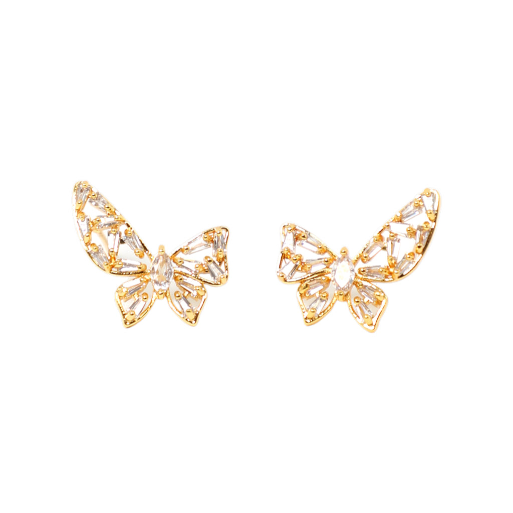 Add a little sparkle with our exquisite Butterfly Stud Earrings adorned with 18k gold-plated mariposas and dazzling CZ stones.