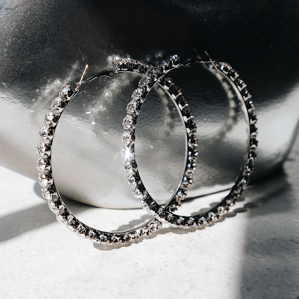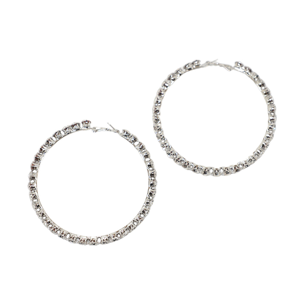 Prong-set stones shine from the outer circumference of these glamorous silver hoops.