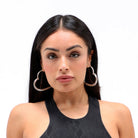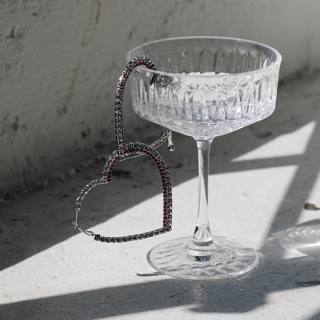 Finish your look with love. Two layers of shimmer adorn these heart-shaped hoops.