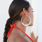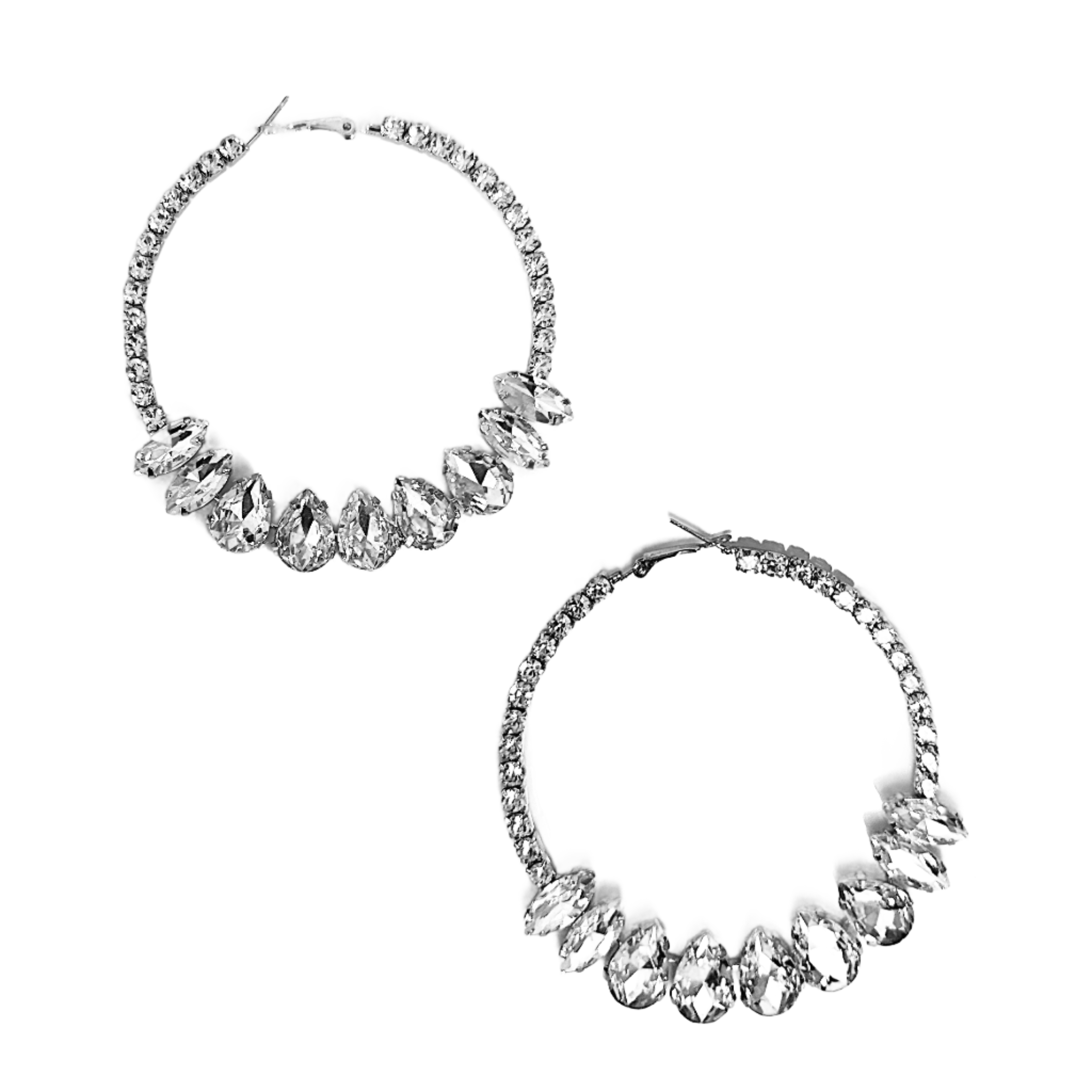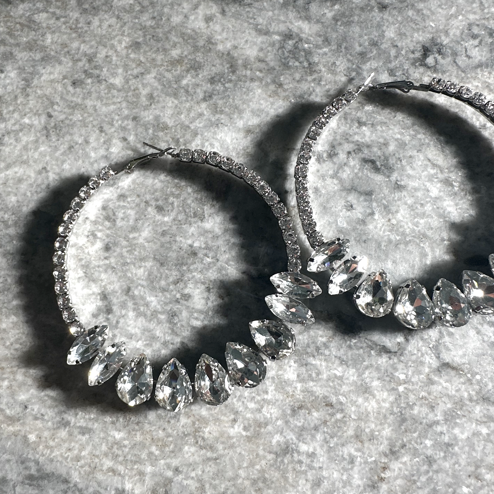 These shimmering hoops are accentuated at the bottom with teardrop-shaped stones, adding just the right amount of glamour to any outfit.
