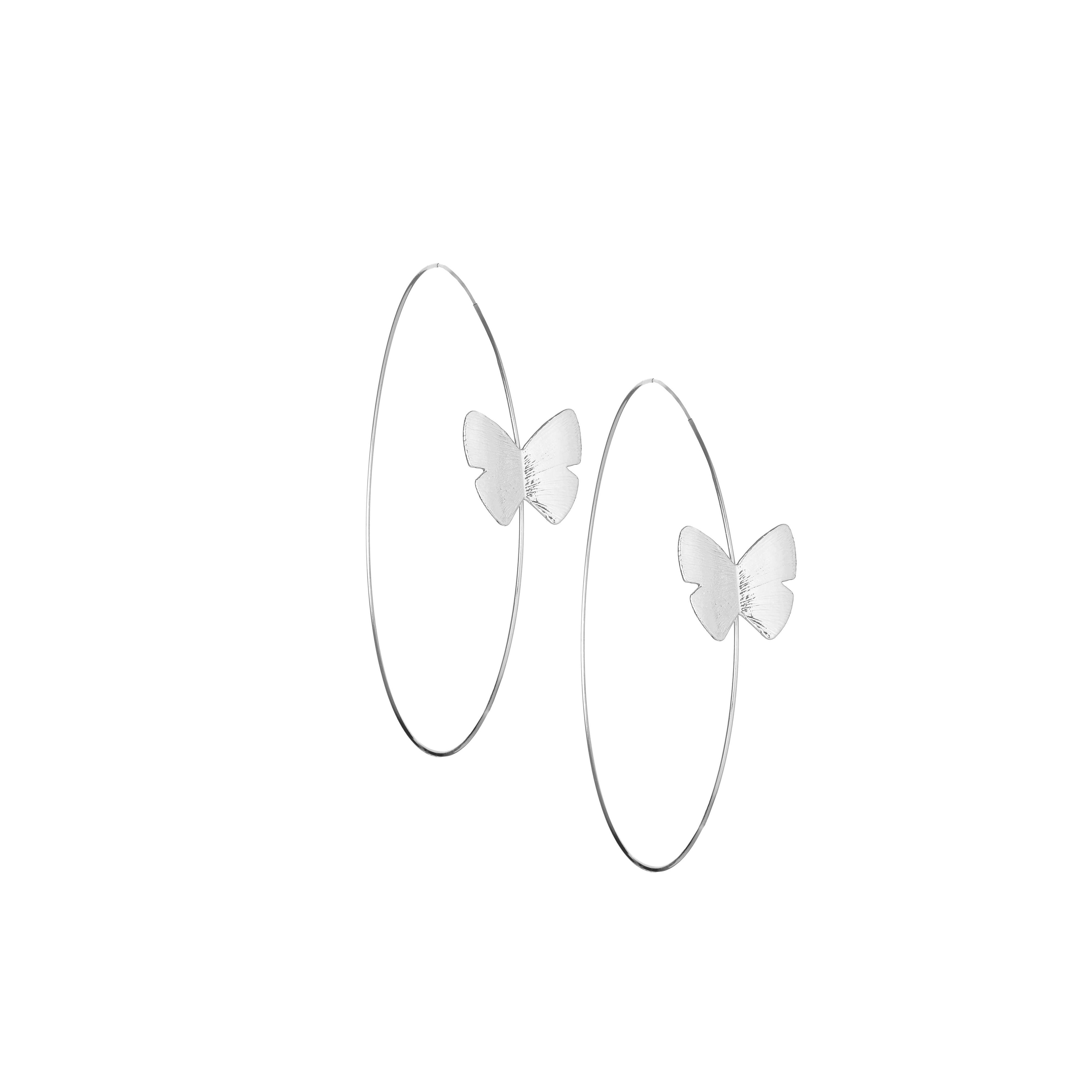 Continuous Butterfly Hoop 2″ Earrings-White Gold
