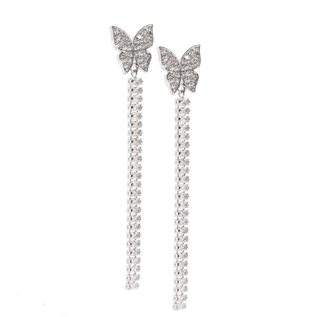 Inspired by Evelyn’s elegant style, these sparkling drop earrings go from day to night with light-catching Swarovski crystal pavè butterfly and sleek brilliance of elongated bars.